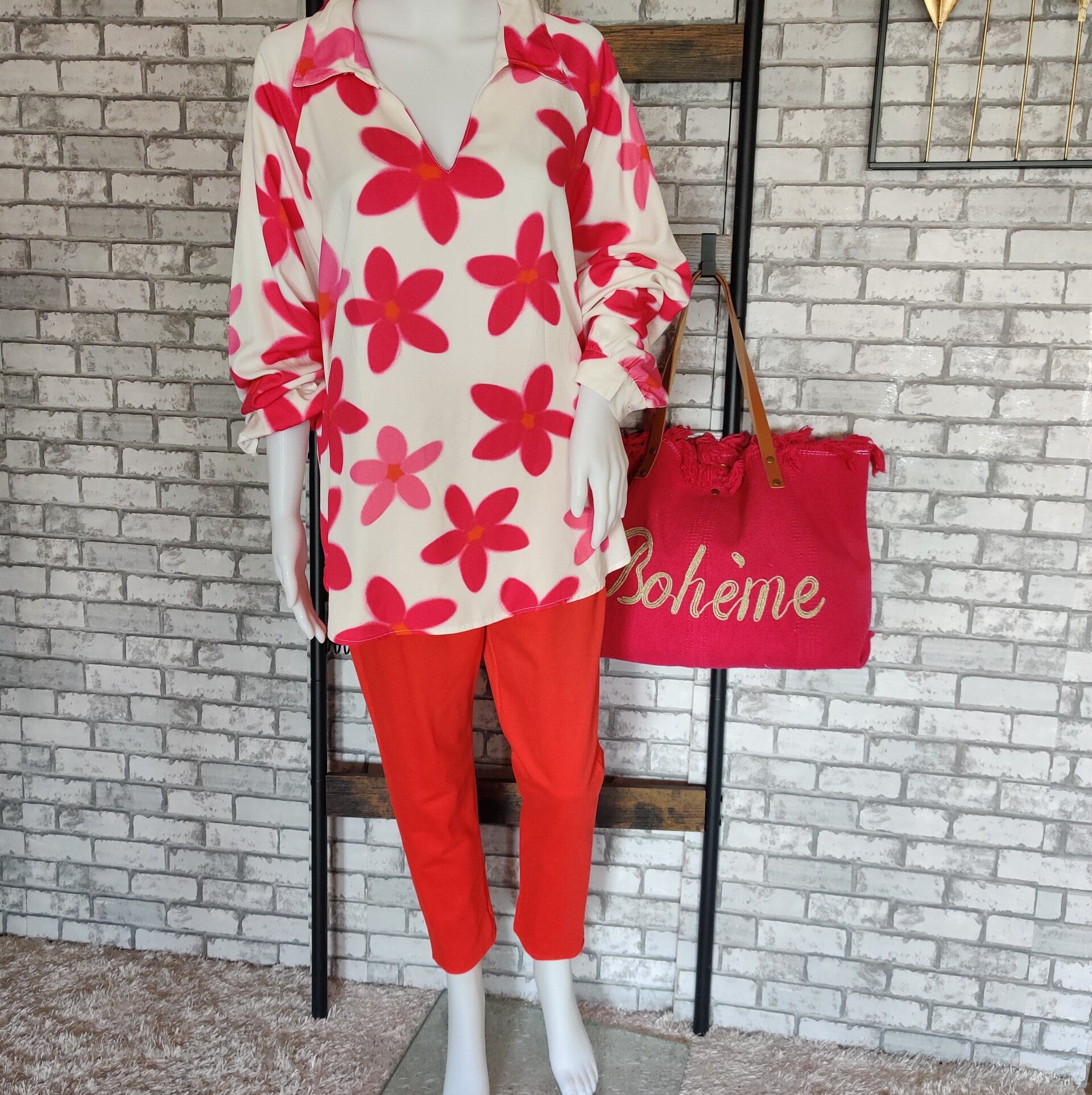 Die Bluse passt zu den Anzugfarben Orange,Pink,Creme