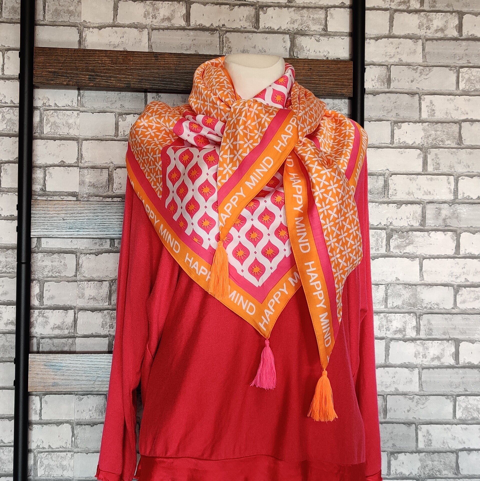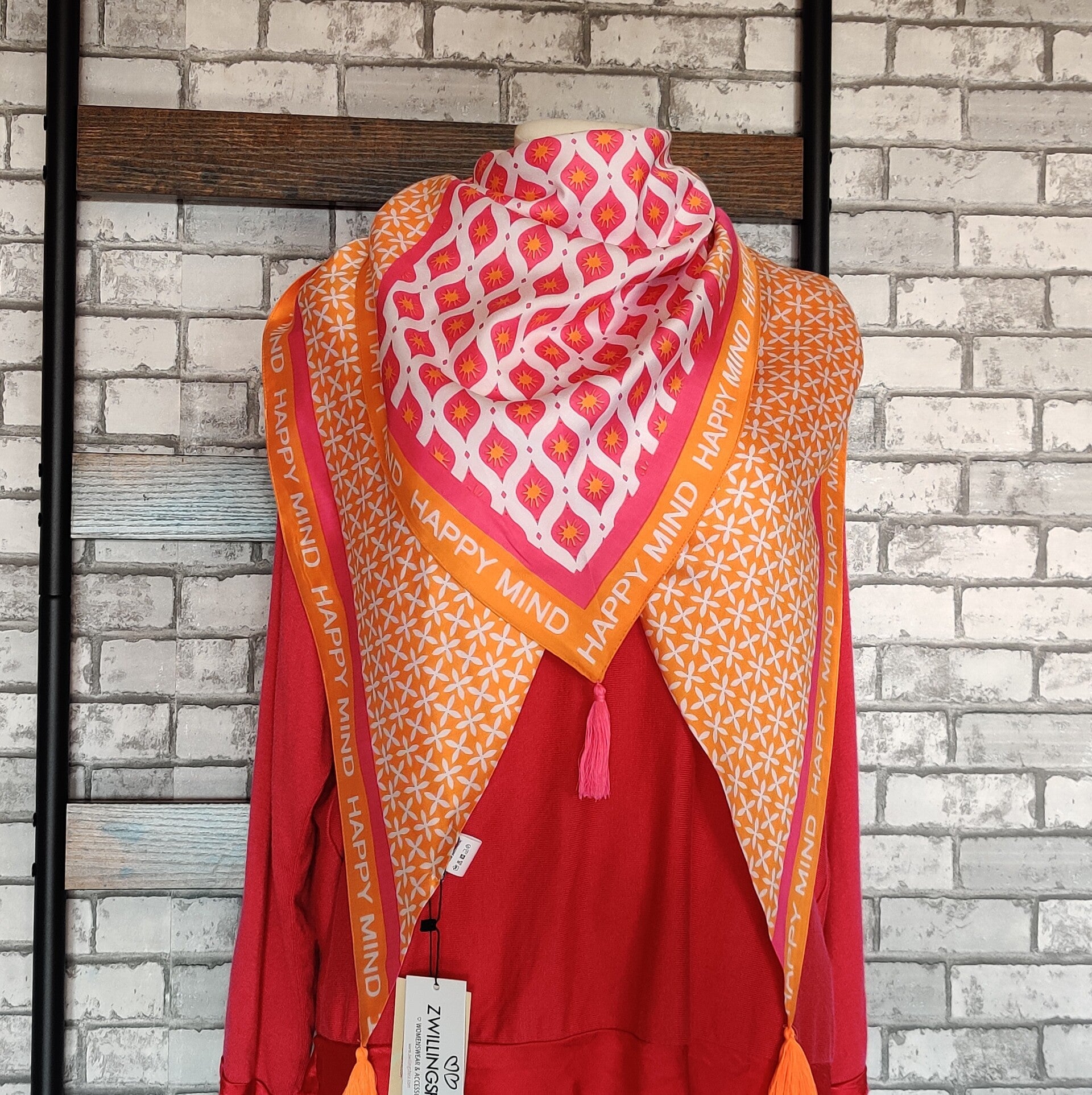 Zwillingsherz, Blickfang, Dreieckstuch, toller Mustermix, Quasten an den Ecken (kann man auch abschneiden falls die stören), ca. 200cm die lange Seite, ca. 100cm die kurze Seite, 100%Viskose (doppelt genähter stoff)