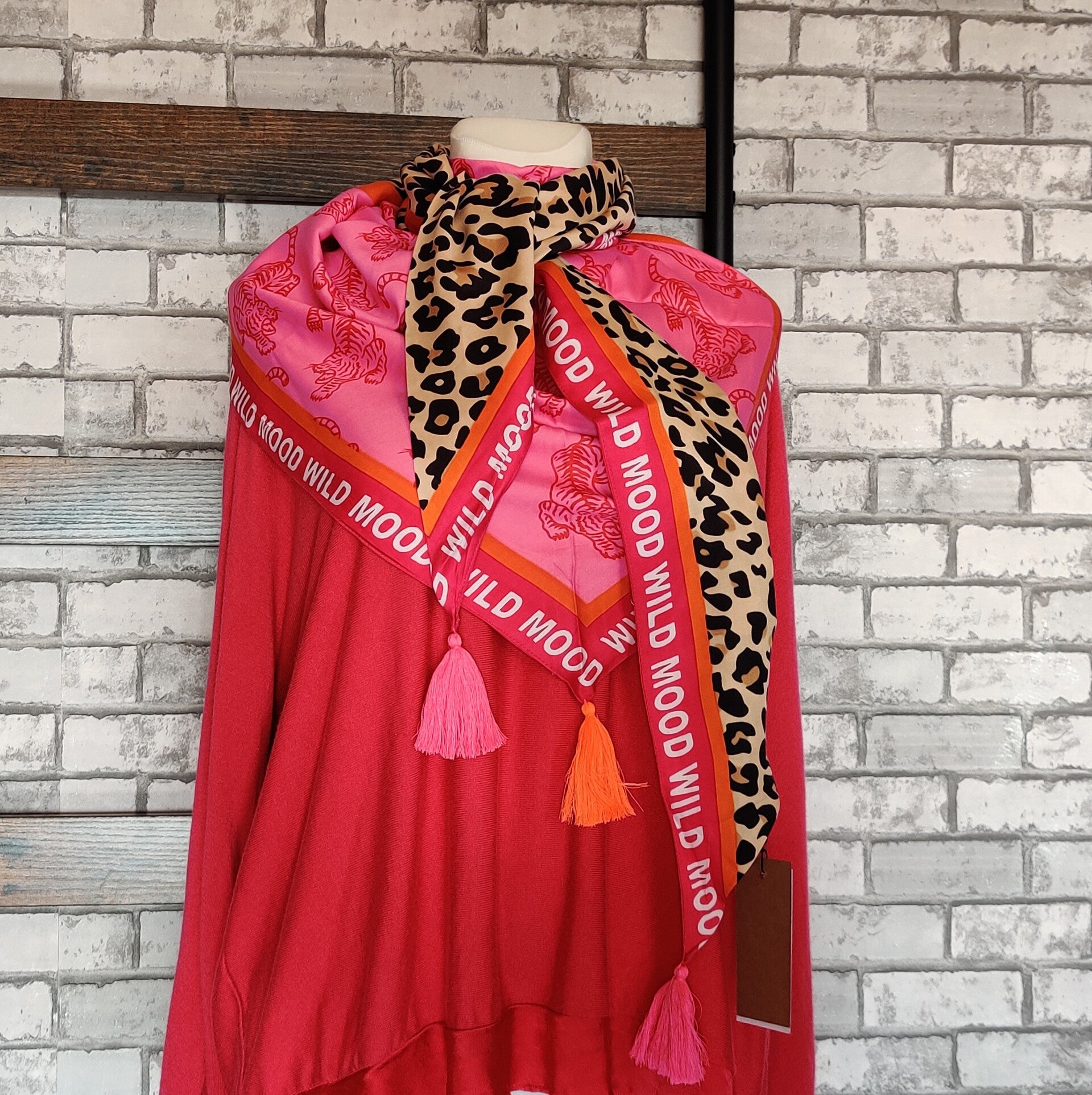 Blickfang, Dreieckstuch, mit tollem Mustermix und Quasten an den Ecken sowie dem Schriftzug "Wild Mood"